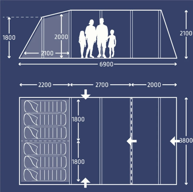 - Darkened Bedrooms – Inner tents use dark materials to block out early morning sunlight for a good night’s sleep.