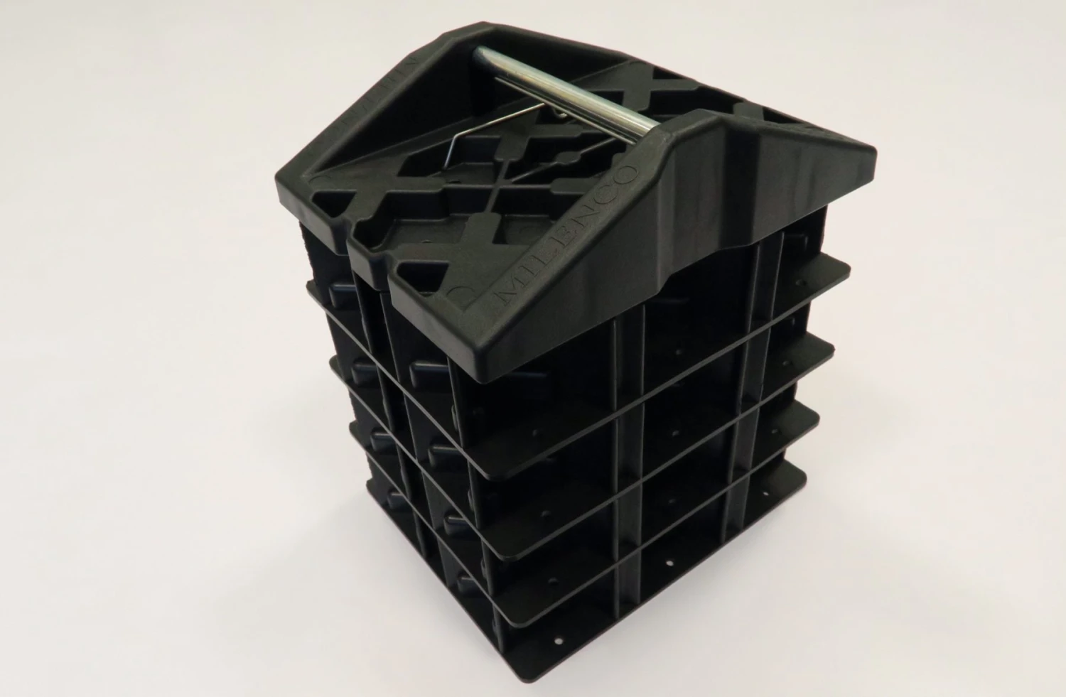 The Stacka Jacka Pads interlocking with solid base and are to be used with Milenco Stacka Corner Feet 3728(cornerย feet are NOT INCLUDED)