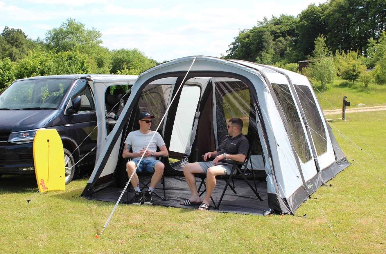 The Outdoor Revolution Movelite Porch Door is a fantastic addition to the Movelite T3E & T4E. Connected using a robust zip, it fits snugly around the front tube of the integral awning porch creating a weatherproof seal using a tight-fitting gusset. There is a large zip back door which allows for full or 2/3rds opening complete with large windows with zip-up curtains, behind this is a full mesh panel which can be left in to offer maximum airflow through the awning while keeping insects out. Complete with PE groundsheet and additional toggle in curtains for complete privacy this porch door creates a practical sheltered and private space, and combined with the full roll-back internal door of the awning can be used to significantly extend the internal living space to suit personal requirements.