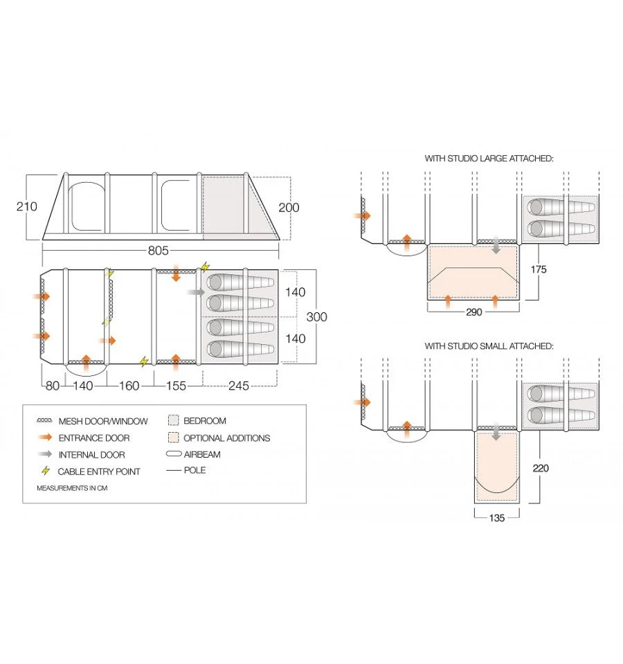 - High Cable Entry – Allows you to neatly run electrical cables out into the awning area at the front of the tent