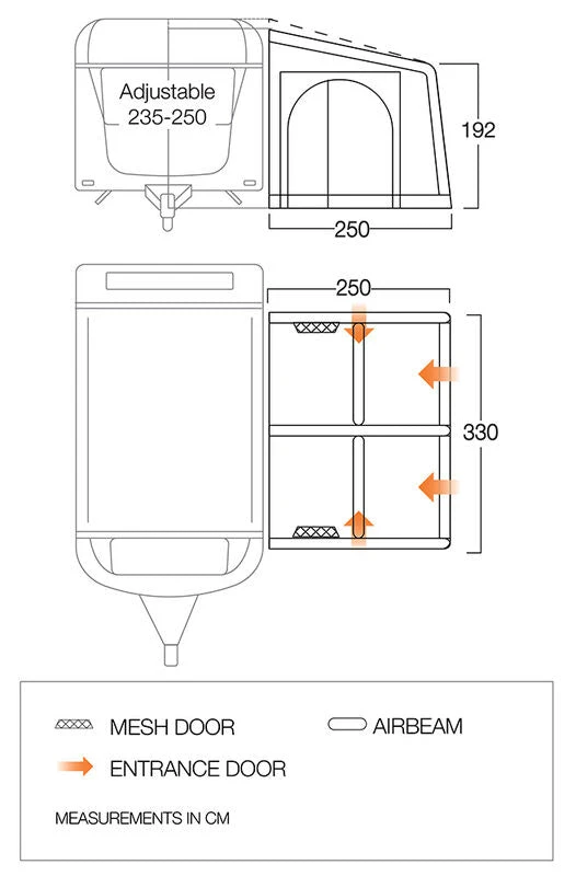 - Optional Mesh Door Pack Available – Mesh doors to increase the flow of air within your awning while keeping bugs out