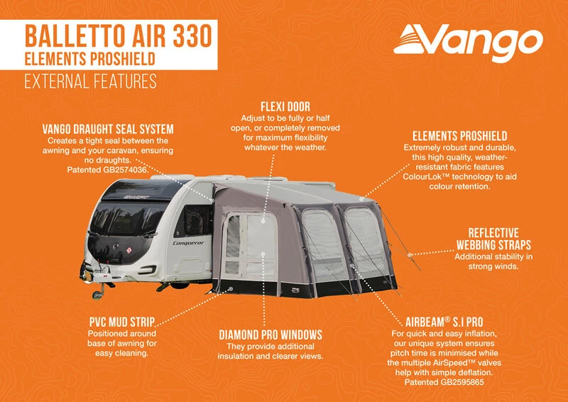 Vango Balletto Air 330 Elements ProShield Caravan Awning with Free Carpet worth ยฃ95ย