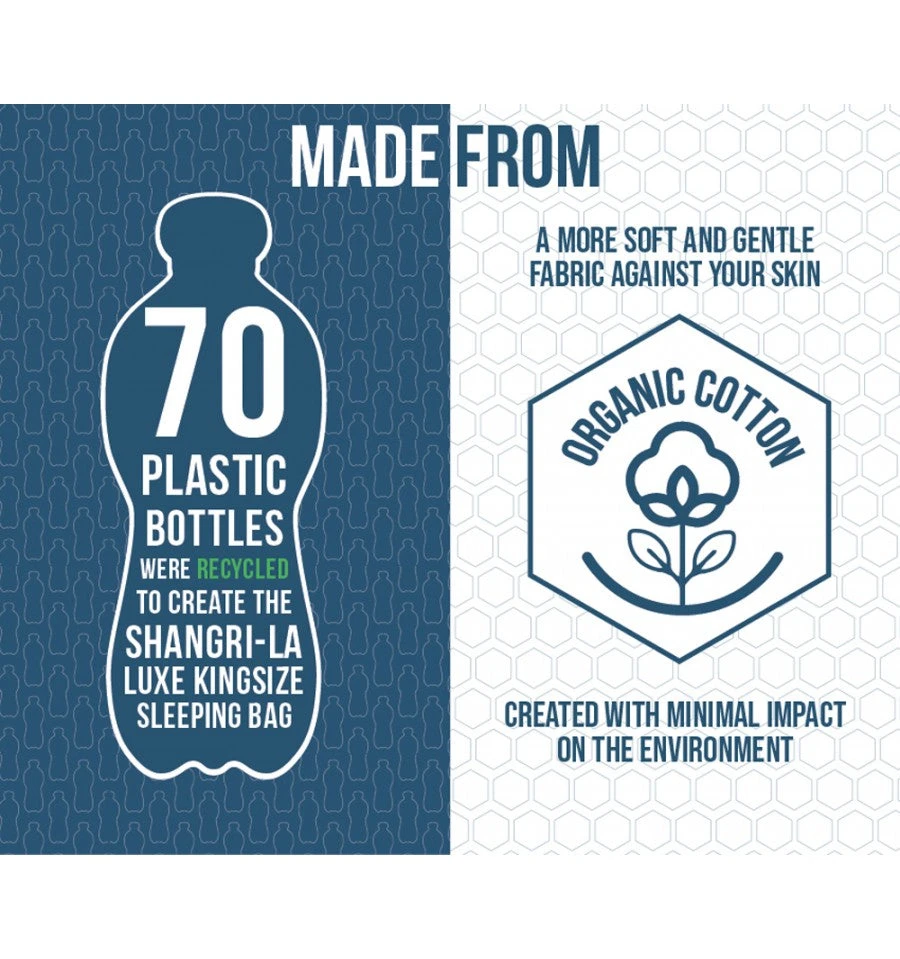 - Organic Polycotton Shell- Created using a mixture of recycled polyester and organic cotton to create a high quality, sustainable polycotton fabric. This shell fabric offers increased comfort, softness and a luxury home from home sleeping experience.